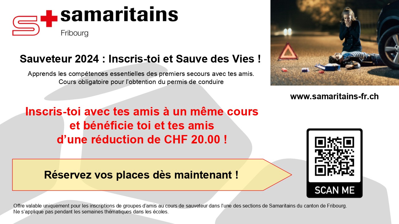 Effectue ton cours de sauveteur auprès d’une section fribourgeoise de samaritains.